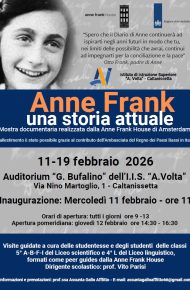 “ANNE FRANK, UNA STORIA ATTUALE”: LA MOSTRA INTERNAZIONALE ARRIVA A CALTANISSETTA